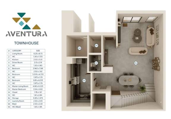 The Aventura Townhouse offers a spacious, multi-level living experience designed for families who value comfort, privacy, and functionality. Spread across three levels, the home features a generous main living area, a secondary family living room, and thoughtfully planned private quarters. With six bathrooms, a dedicated maid’s room and bathroom, a driver’s room, a modern kitchen, and practical additions such as a laundry room, closet space, and storage, the townhouse combines convenience with elevated residential design. It is an ideal choice for residents looking for a larger, well-structured home that supports family life, entertaining, and long-term comfort within the Aventura communityProperty amenities